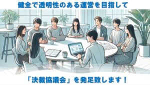 当社では社員の皆様からの質問や要望に対する決裁プロセスをより法的に適正かつ透明性の高いものにするため、「決裁協議会」を発足させることとなりました。これまでは、社長や役員、その他のメンバーが個々の判断で決裁を行ってまいりましたが、法令遵守の観点を強化し、また、社労士の指導を受け、組織としてより公正で適切な判断が下せる体制を整えました。
