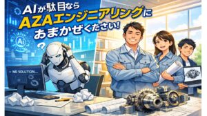 最後にひとつ。AIは便利ですが、もし「AIに聞いても図面が出てこない…」そんなときは、ぜひ AZA(アザエンジニアリング)にご相談ください。AIもいいですが、設計・図面・データー作成のご依頼はAZAへ!おまかせくださいっ!
