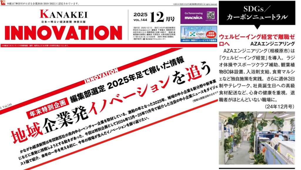 昨年12月の社長ブログでもご紹介しましたが、かながわ経済新聞にて、同号でもう一つ、弊社の取り組みをご紹介いただきました。今回の記事は、かながわ経済新聞が年間を通じて取材している県内の中小・ベンチャー企業の中から、特に注目された取り組みをま... -