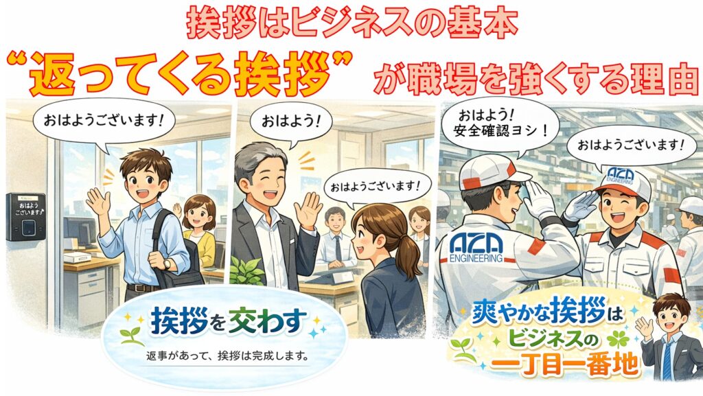 最近、社内で「挨拶をしているのに返ってこない」「無視されているように感じてしまう」 という声がありました。弊社では、出社時にアイタイムで打刻すると「おはようございます」という音声が流れます。それに合わせて挨拶をしてデスクに向かう。ただ、す... -